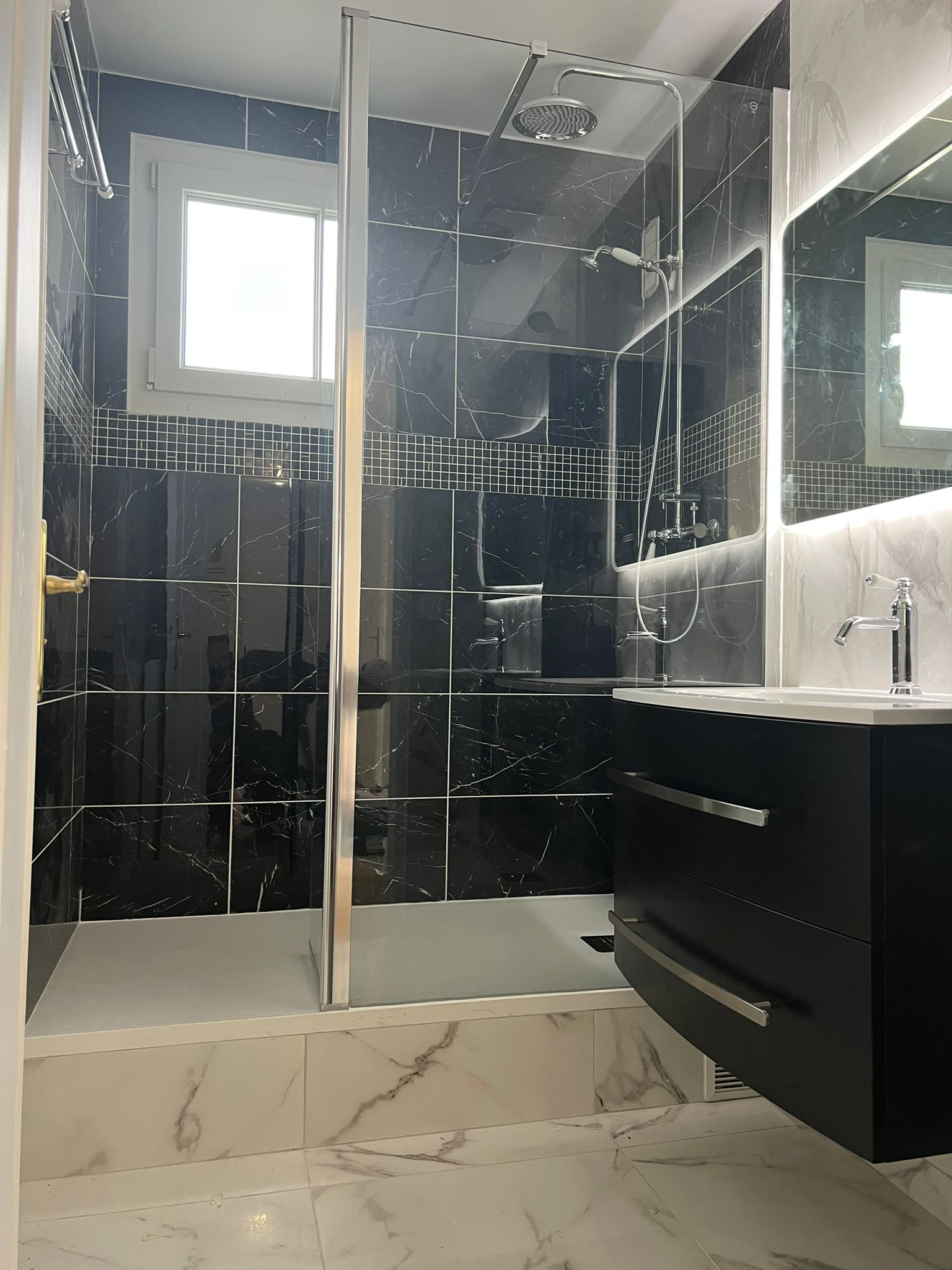 Une métamorphose complète pour cette salle de bain. Nous avons déposé l'ancien carrelage pour installer une douche à l'italienne spacieuse et un meuble vasque suspendu. Un gain de luminosité et de confort immédiat pour nos clients de Garges (92)